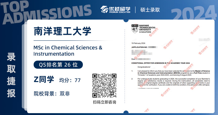 Z學(xué)姐是在去年12月底來(lái)到優(yōu)越的,碩士留學(xué)申請(qǐng)只花了3周的時(shí)間,上岸南洋理工大學(xué)化學(xué)科學(xué)與儀器碩士項(xiàng)目。接下來(lái),就跟優(yōu)越君一起看看,需要具備哪些實(shí)力,才能在短短3周逆天改命吧~