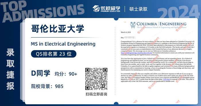 錄取院校:哥倫比亞大學(xué)——電子電氣工程碩士