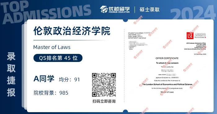 就這樣,A學(xué)姐將所有材料準(zhǔn)備全權(quán)委托給了Ninal老師辦理留學(xué)英國,自己則全力準(zhǔn)備國內(nèi)院校的夏令營。10月底,所有材料全部準(zhǔn)備就緒,服務(wù)老師開始輔助完成所有院校投遞。12月,A學(xué)姐順利收到了LSE的offer。最終,在保研院校和LSE之前反復(fù)斟酌后,A學(xué)姐選擇了去英國讀書,祝她一切順利!