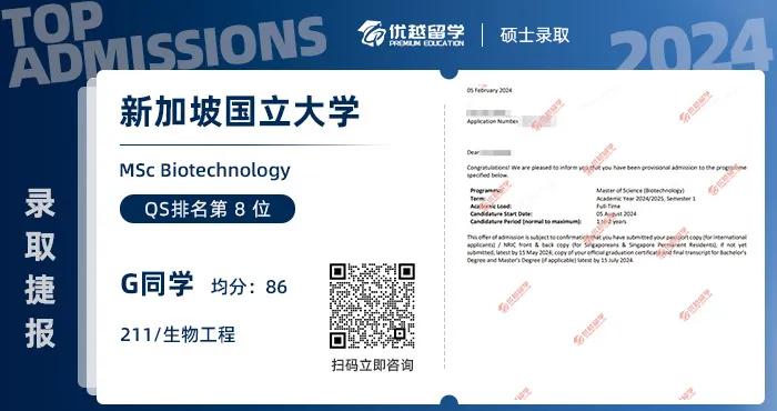 經(jīng)過多方協(xié)同努力,11月,G同學(xué)的材料準(zhǔn)備完成,院校投遞工作啟動。今年2月,G同學(xué)成功拿到新國立的offer,圓夢成功!