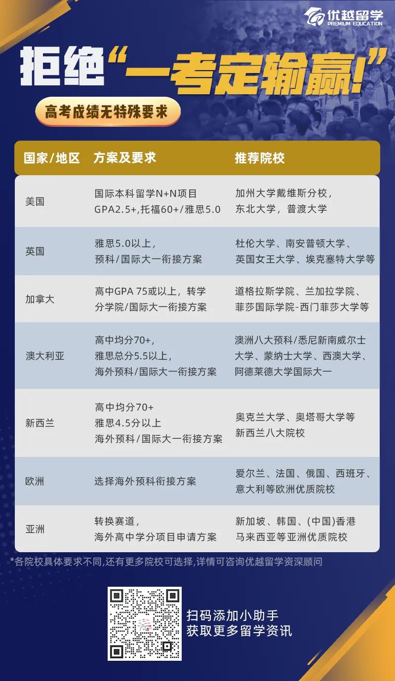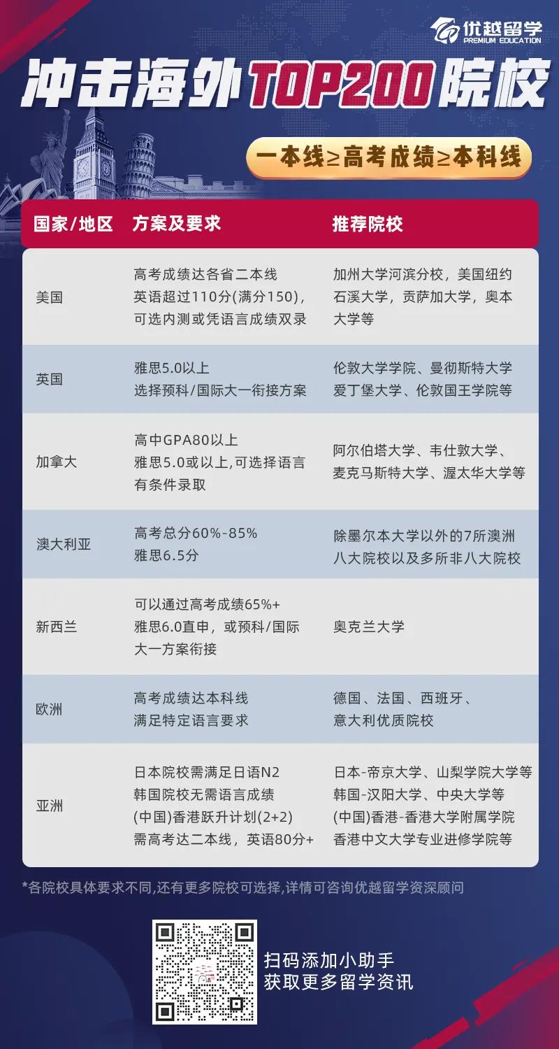 以上是【高考卷不動(dòng)?不慌!各國本科留學(xué)方案及申請(qǐng)要求匯總大全】相關(guān)的全部內(nèi)容,查看更多【出國留學(xué)本科】相關(guān)資訊可前往【優(yōu)越留學(xué)】首頁!詳細(xì)申請(qǐng)規(guī)劃及方案定制請(qǐng)預(yù)約優(yōu)越留學(xué)顧問為你一對(duì)一解答!
