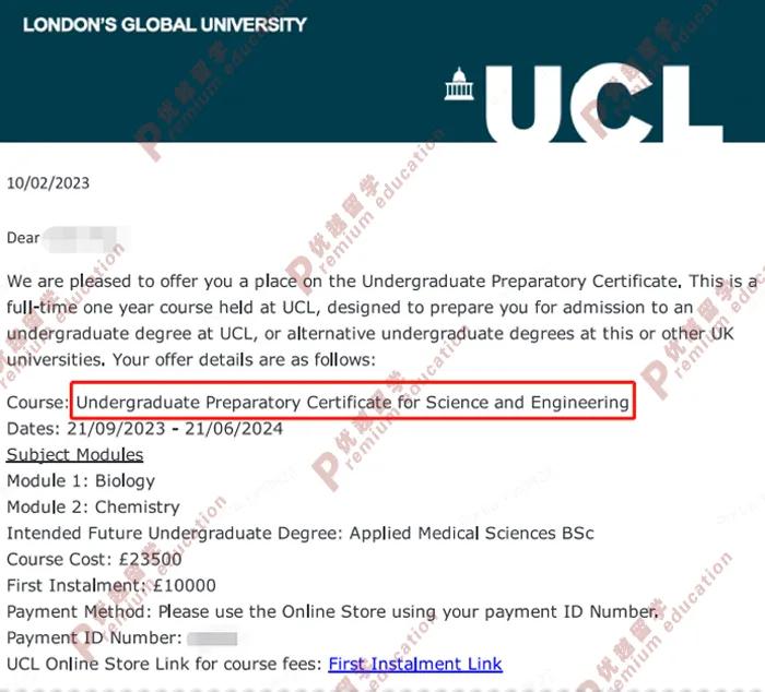 在該學(xué)員順利完成1年預(yù)科課程,達(dá)到UCL本校錄取要求后,第二年即可升學(xué)本科課程。而且UCL的本科預(yù)科是牛津劍橋唯一認(rèn)可的預(yù)科,換句話說,這位同學(xué)有機(jī)會(huì)直接升學(xué)到牛津、劍橋大學(xué)讀本科。
