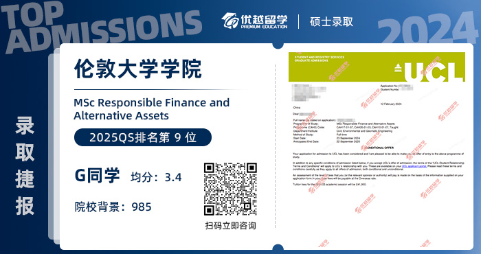 錄取院校:倫敦大學(xué)學(xué)院——責(zé)任金融與另類資產(chǎn)碩士