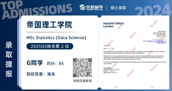 以上是【本期案例:【G5名?!亢1緮?shù)學(xué)學(xué)霸,4個(gè)月拿下世界top2帝國(guó)理工學(xué)院數(shù)據(jù)科學(xué)offer!】相關(guān)的全部?jī)?nèi)容,查看更多【offer榜單】、【名校案例】相關(guān)資訊可前往【優(yōu)越留學(xué)】首頁(yè)!世界名校申請(qǐng),找優(yōu)越留學(xué)!選校定校、申請(qǐng)規(guī)劃、文書寫作、背景提升、方案定制一套搞定!點(diǎn)擊【在線咨詢】,優(yōu)越留學(xué)顧問24h在線為您一對(duì)一解答!