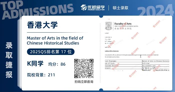 在Carol老師的敦促下,11月底,K學(xué)姐的所有材料準(zhǔn)備就緒,院校投遞工作正式啟動(dòng)。今年3月,K學(xué)姐成功獲得了港大的offer,圓夢(mèng)成功!