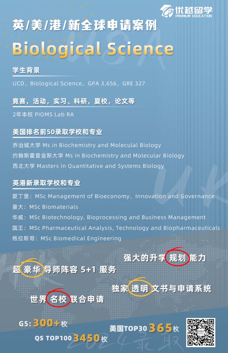 以上是【【多國(guó)聯(lián)申】生物醫(yī)學(xué)多搶手?攬獲美國(guó)JHU、西北大學(xué)、英國(guó)王愛曼華offer! 】相關(guān)的全部?jī)?nèi)容,查看更多【名校案例】相關(guān)資訊可前往【優(yōu)越留學(xué)】首頁(yè)!詳細(xì)申請(qǐng)規(guī)劃及方案定制請(qǐng)預(yù)約優(yōu)越留學(xué)顧問為你一對(duì)一解答!