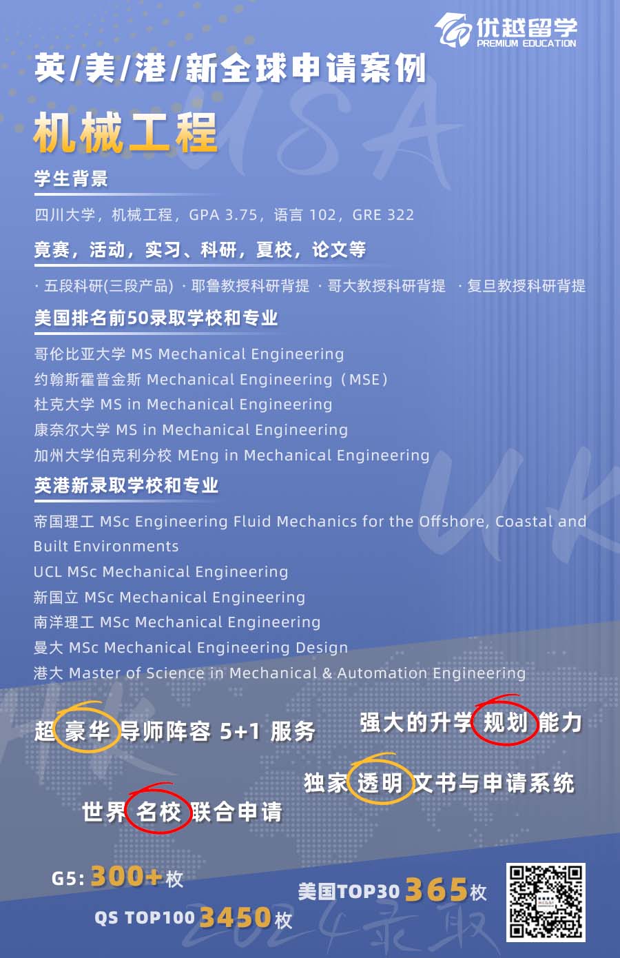 以上是【【多國聯(lián)申】英美港新最強(qiáng)賽季,IC、哥大、UCB、NUS、港大全拿下!】相關(guān)的全部內(nèi)容,查看更多【名校案例】相關(guān)資訊可前往【優(yōu)越留學(xué)】首頁!詳細(xì)申請規(guī)劃及方案定制請預(yù)約優(yōu)越留學(xué)顧問為你一對一解答!