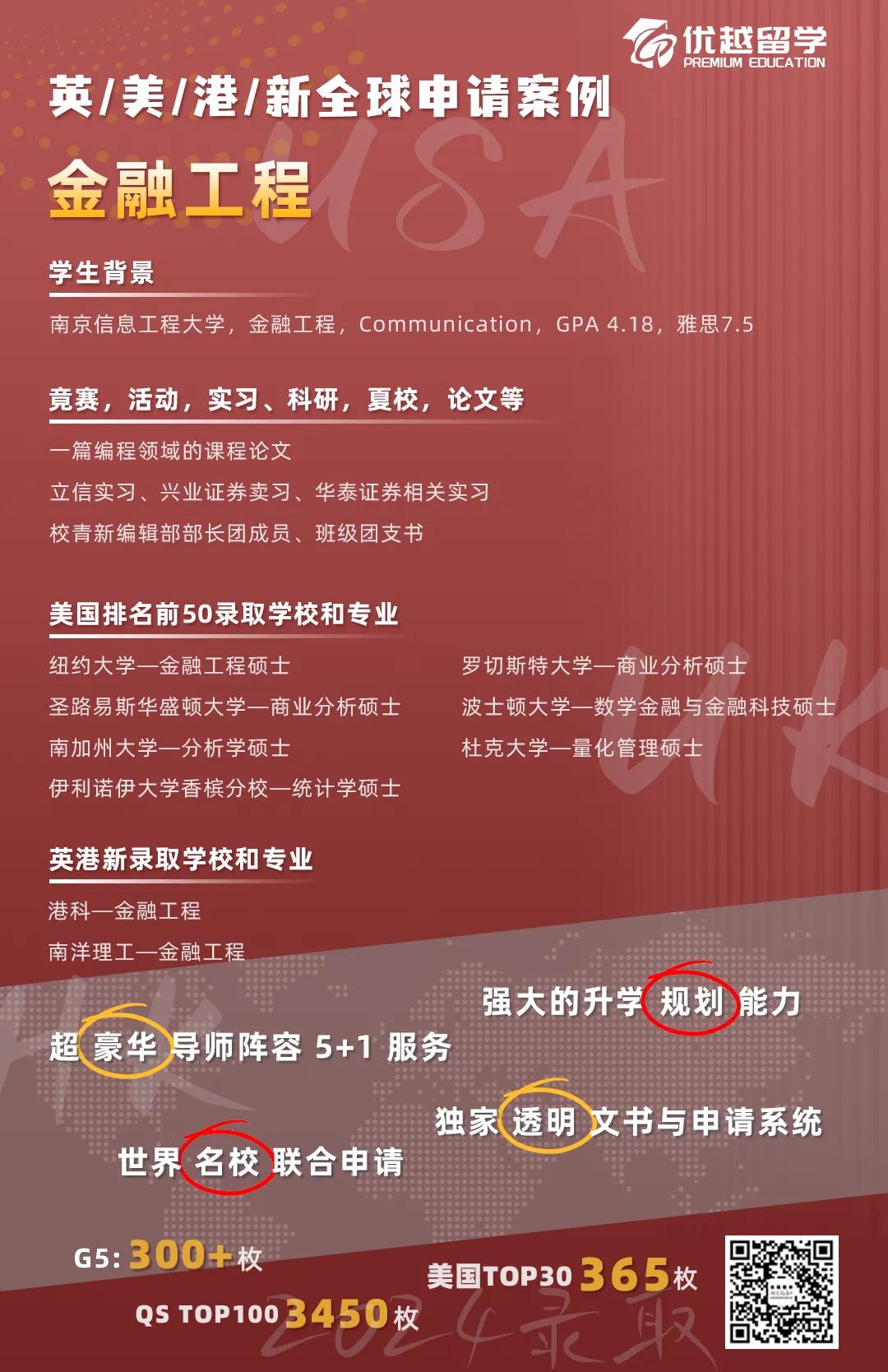 以上是【本期offer榜單:【碩士案例】雙非金融生苦修GPA,多國聯(lián)申拿下紐大、南加州、NTU、港科技o(jì)ffer! 】相關(guān)的全部內(nèi)容,查看更多【offer榜單】、【名校案例】相關(guān)資訊可前往【優(yōu)越留學(xué)】首頁!世界名校申請,找優(yōu)越留學(xué)!選校定校、申請規(guī)劃、文書寫作、背景提升、方案定制一套搞定!點擊【在線咨詢】,優(yōu)越留學(xué)顧問24h在線為您一對一解答!