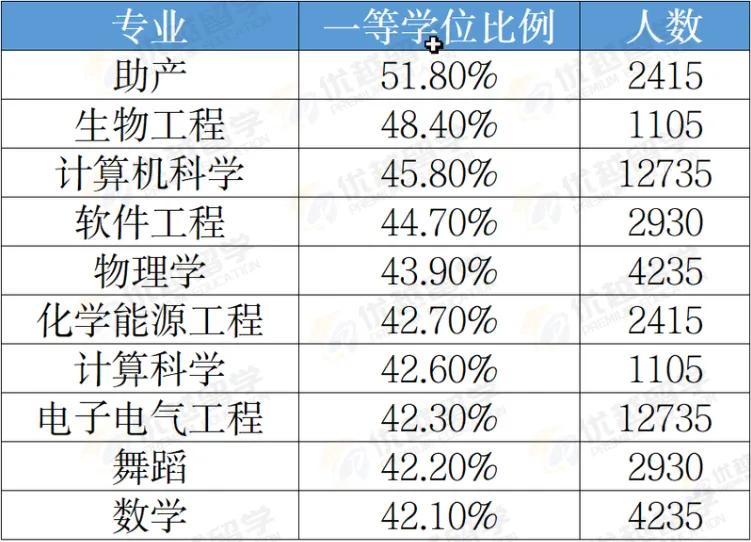*最難獲得一等學位的專業(yè)