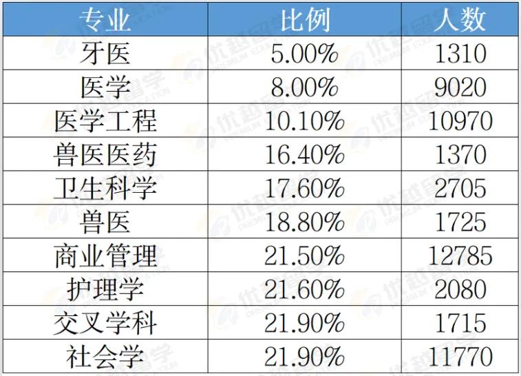 還有一個專業(yè),優(yōu)越君認為也值得說道,那就是商業(yè)管理專業(yè)。商業(yè)管理專業(yè)一直是被嘲諷水專業(yè)的重災區(qū)。但數(shù)據(jù)顯示,其一等學位授予比例是最低的幾個專業(yè)之一。