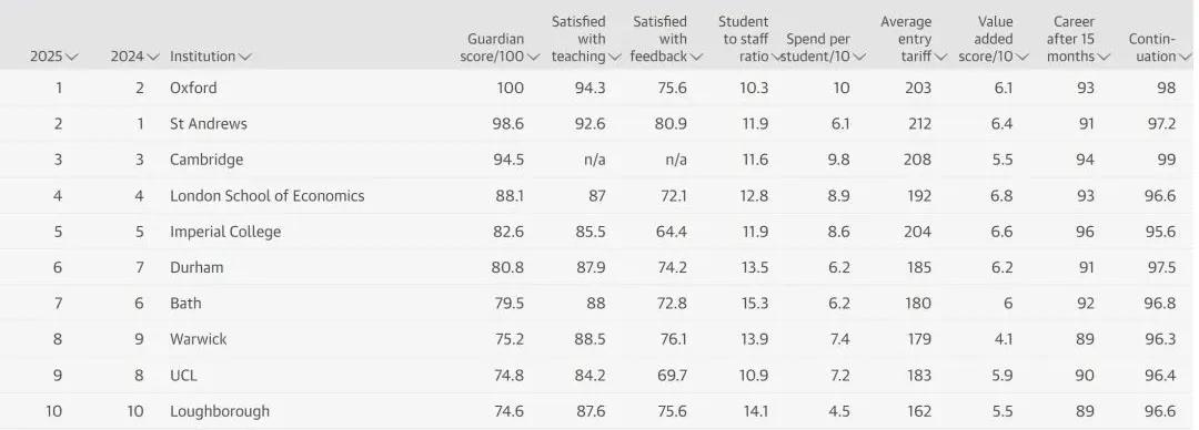 9月7日,被稱為“更適合本科生升學(xué)擇校的排名”——《衛(wèi)報》發(fā)布了2025年英國最佳大學(xué)排名.