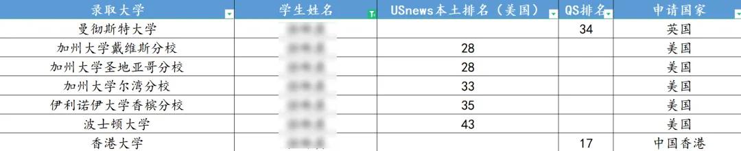 ? 特例3:全球申方向上,一位同學(xué)美國(guó)方向申請(qǐng)到UCSD、UCD、BU,且申請(qǐng)到香港大學(xué),卻在英國(guó)方向只拿到了曼大的錄取。