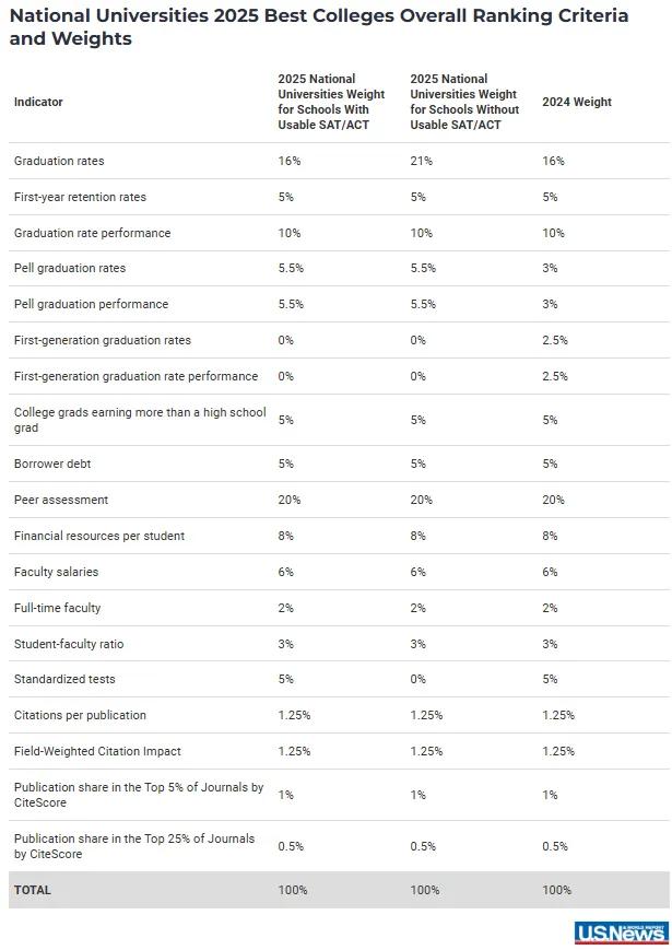 U.S. News是美國大學(xué)排名中最受關(guān)注和最權(quán)威的一個,是申請美國院校時最重要參考材料,沒有之一!今年它的排名指標(biāo)的權(quán)重有所調(diào)整,刪除了第一代大學(xué)生畢業(yè)率與畢業(yè)表現(xiàn)。而是加大了“Pell graduation rates”和“Pell graduation performance”這兩項指標(biāo)的比重。