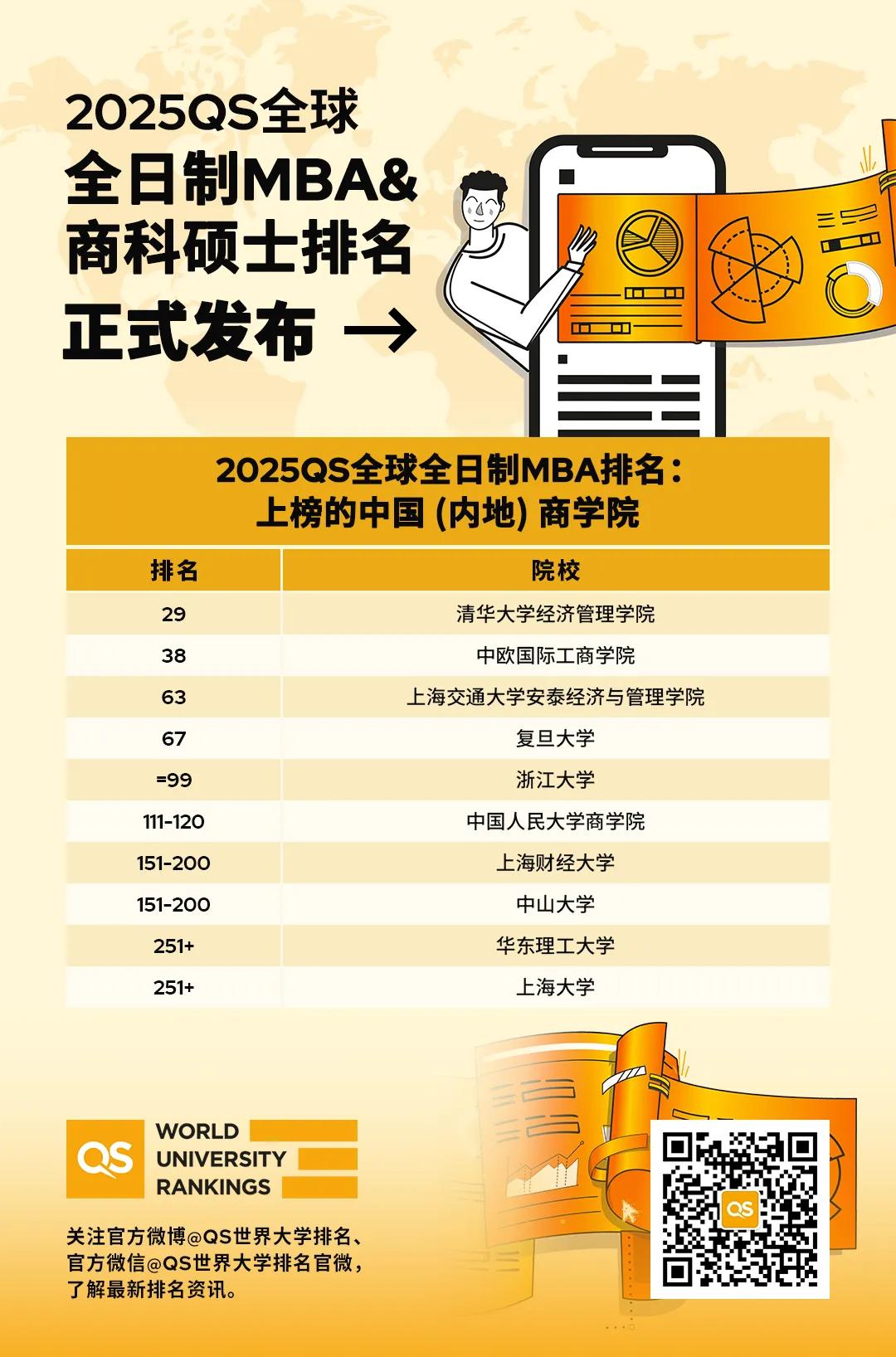 9月25日,QS Quacquarelli Symonds正式發(fā)布了2025QS全球全日制MBA & 商科碩士排名。