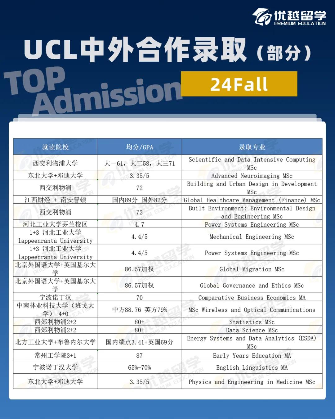 不止西交利物浦和寧波諾丁漢這樣,UIC,港中深申請也一樣,基本申UCL這種GPA到了3.0就可以申請。只要成績不低于60+,除去一些卷上天的熱門專業(yè),基本就是穩(wěn)拿錄取!