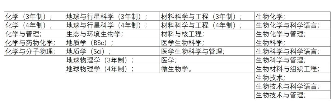生命科學院:成績要求介于AAB-AAA,比如生化、生物學、生物醫(yī)學科學