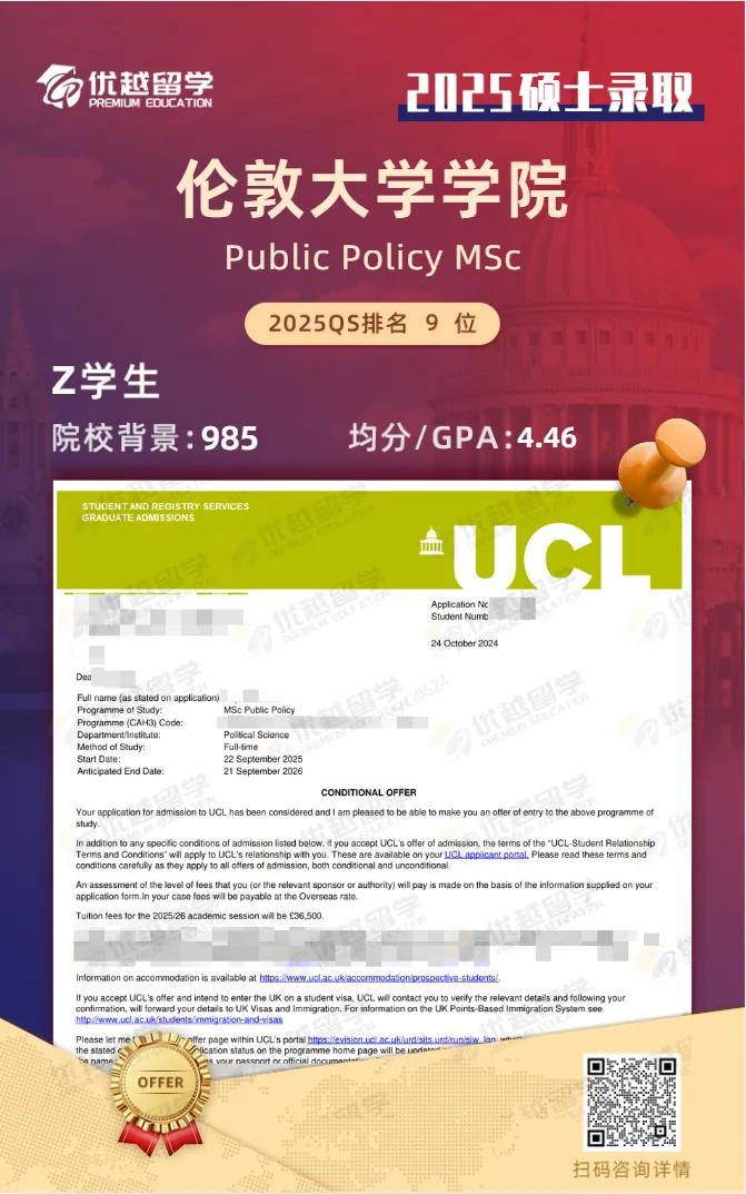 ? 錄取院校及專業(yè):倫敦大學(xué)學(xué)院UCL-公共政策