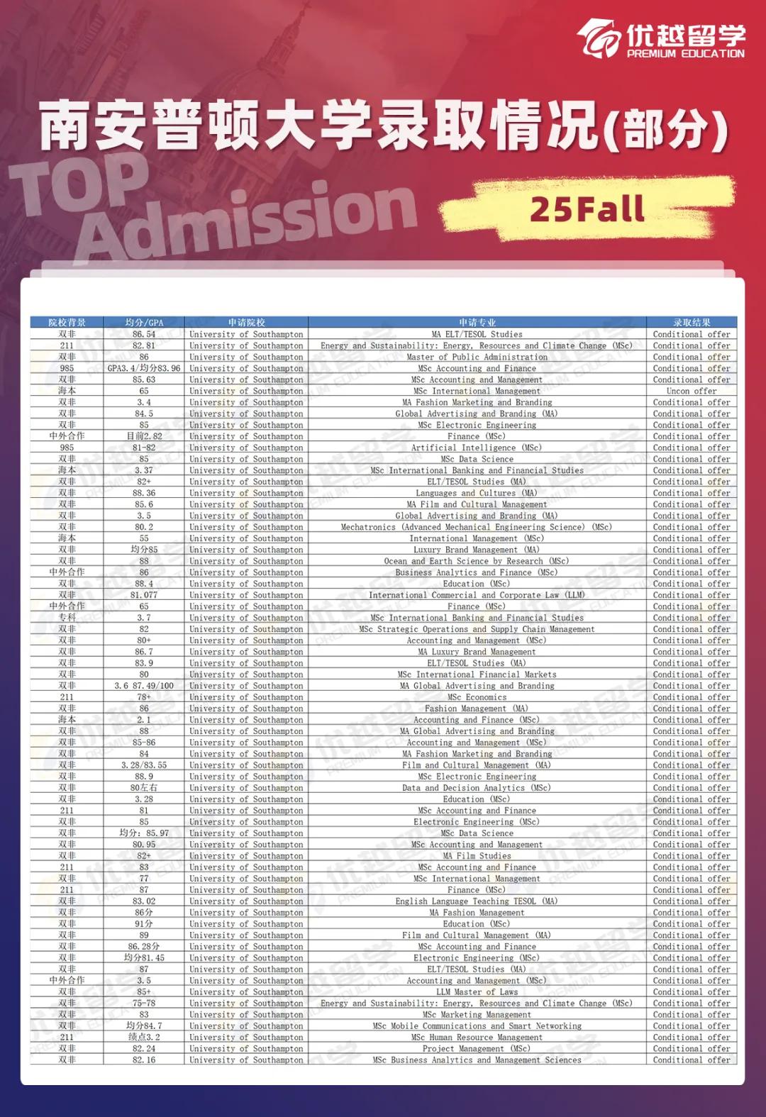 與一些傳統(tǒng)名校相比,南安普頓大學(xué)的申請(qǐng)難度相對(duì)較低。非常適合不同背景的學(xué)生申請(qǐng)。我們更是建議雙非學(xué)生將其作為主申請(qǐng)和沖刺院校!