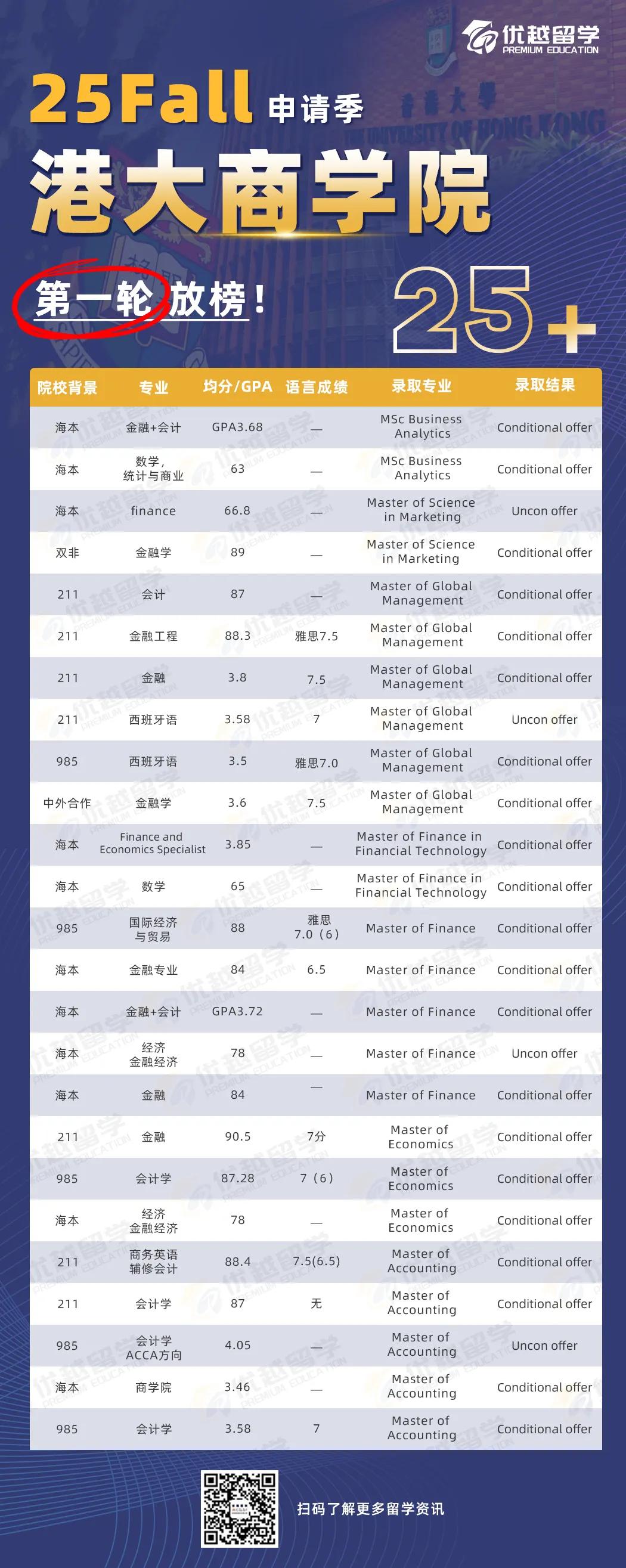 本來按照今年港校的火爆程度,提前關(guān)閉申請我們也是預(yù)料之中的,不過,這關(guān)閉得也太快了吧!要知道,官網(wǎng)顯示到明年3月份才停止申請!足足提前了4個月。不過,被港中文傷心的學子,或許能在港大這里得到些許安慰。香港大學商學院正式批offer發(fā)麻了!優(yōu)越留學已經(jīng)斬獲25+枚offer!
