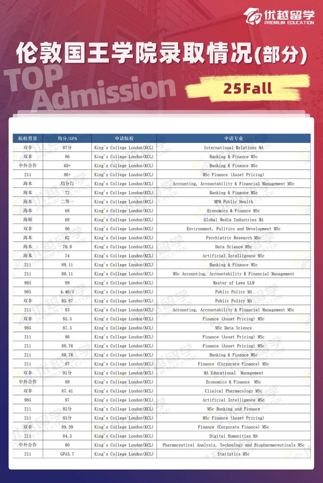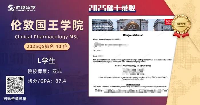 不過(guò),在拒信滿(mǎn)天飛的情況下, 優(yōu)越還是拿到了不少KCL的offer。