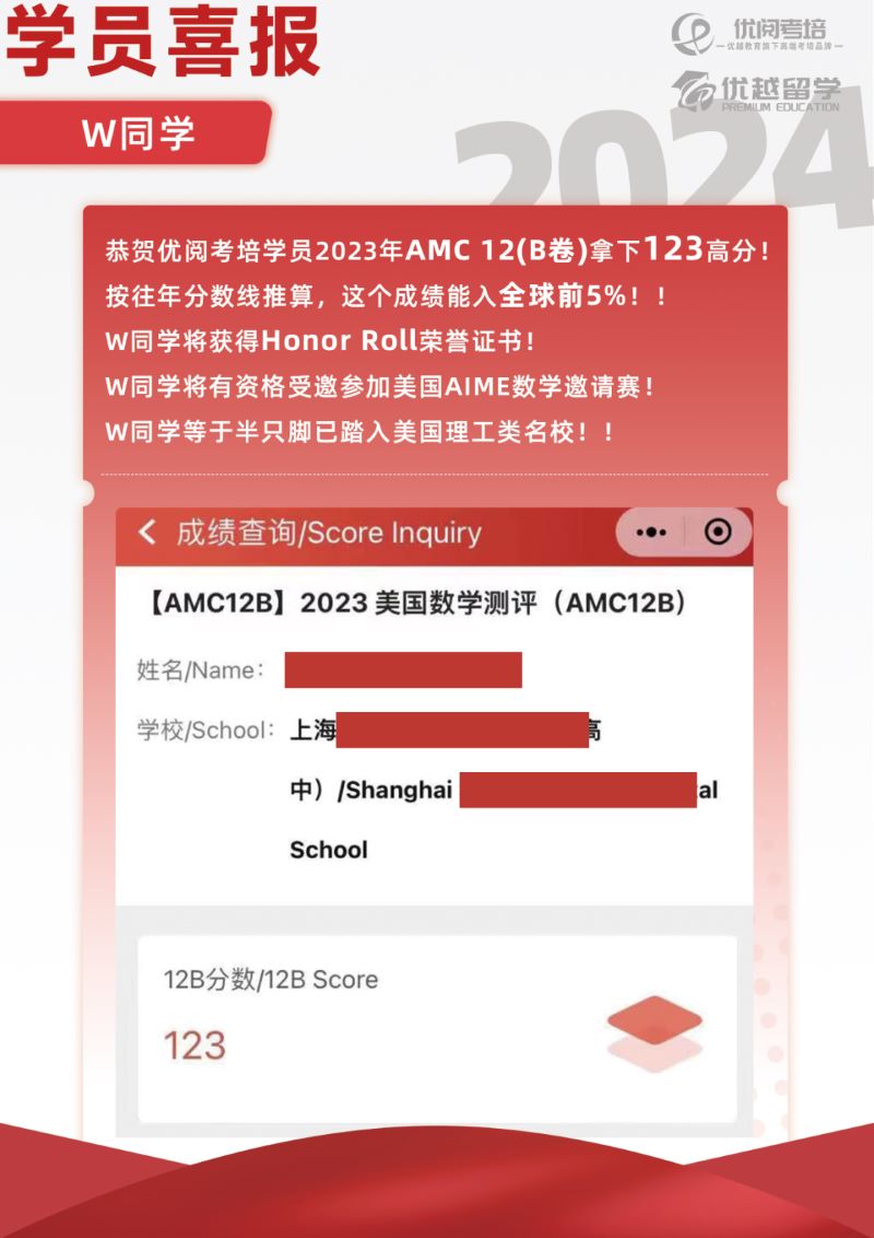 獲得AMC10前2.5%或AMC12前5%的學(xué)生可獲得參加AIME邀請(qǐng)賽的資格,AIME成績(jī)優(yōu)異對(duì)申請(qǐng)大學(xué)有強(qiáng)大助力。