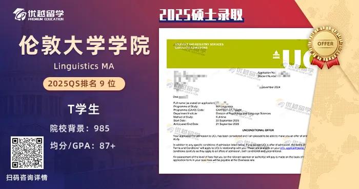 以上是【【英國碩士留學】有條件VS無條件offer:如何更易獲得英國名校無條件錄取?】相關(guān)的全部內(nèi)容,查看更多【 英國碩士留學】相關(guān)資訊可前往【優(yōu)越留學】首頁!詳細申請規(guī)劃及方案定制請預(yù)約優(yōu)越留學顧問為你一對一解答!