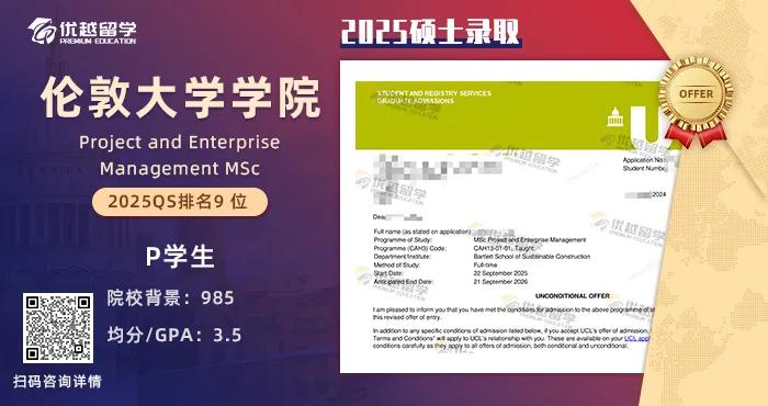 那么,有沒有一些直接無條件錄取案例的背景參考呢?當然有!以今年拿到的UCL無條件錄取作為參考??