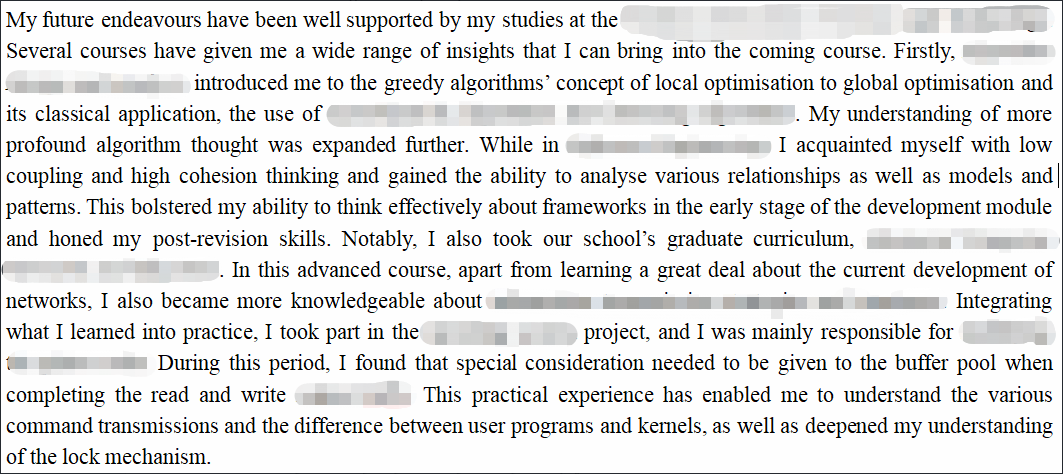 同時(shí),我們還幫助從實(shí)習(xí)、標(biāo)化成績等方面進(jìn)行了規(guī)劃,以進(jìn)一步提升學(xué)生的背景競爭力,最終順利幫助學(xué)生取得了申請季的“大豐收”。PS第一段用誠懇的語言描述了申請計(jì)算機(jī)專業(yè)的興趣來源和職業(yè)理想,完美契合課程內(nèi)容。