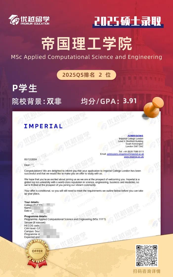 P同學能成功申請IC具有多方面的優(yōu)勢,這些優(yōu)勢在申請過程中起到了關鍵作用,幫助她成功獲得了帝國理工學院(IC)以及其他多所高校的錄取。