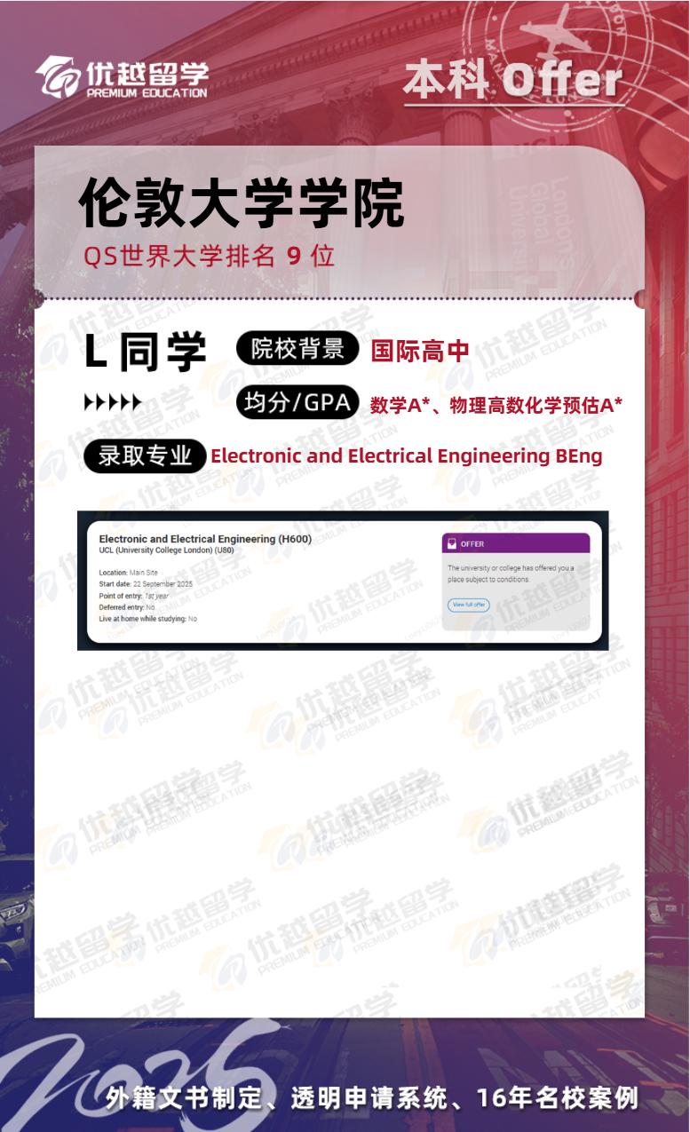 以上是【【本科案例】普高轉(zhuǎn)軌AP,6門(mén)學(xué)科滿分拿下UCL物理學(xué)本科offer! 】相關(guān)的全部?jī)?nèi)容,查看更多【 本科留學(xué)申請(qǐng)】相關(guān)資訊可前往【優(yōu)越留學(xué)】首頁(yè)!詳細(xì)申請(qǐng)規(guī)劃及方案定制請(qǐng)預(yù)約優(yōu)越留學(xué)顧問(wèn)為你一對(duì)一解答!