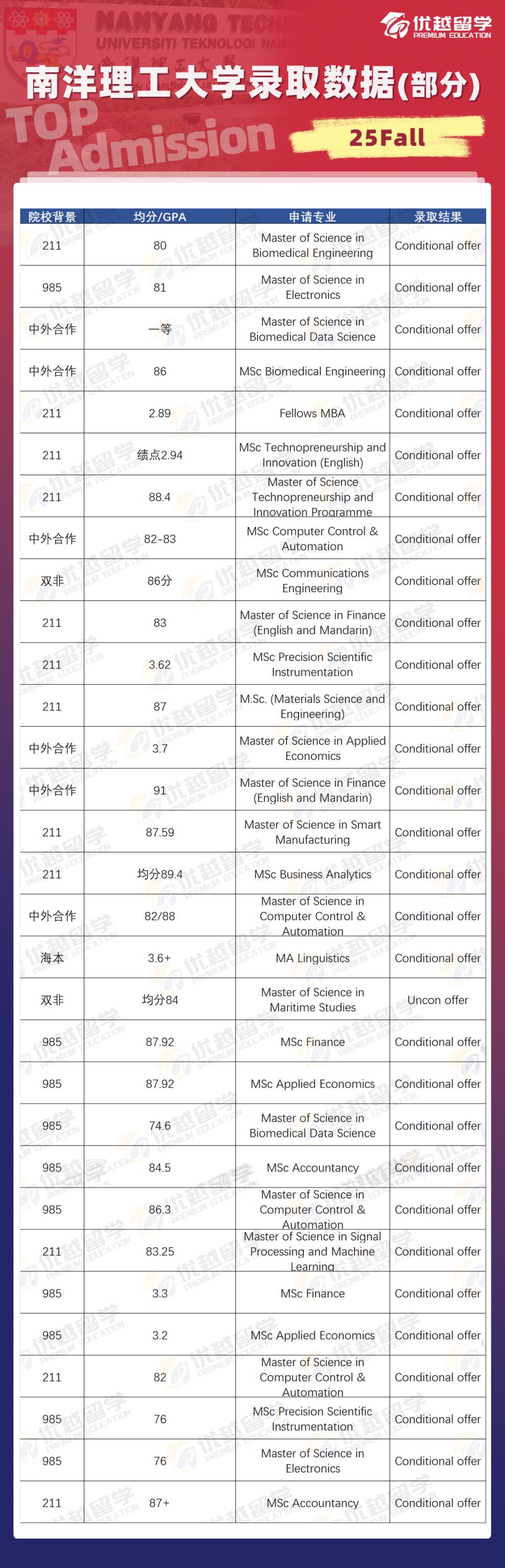 好啦,今天的分享就到這里,如果對其他專業(yè)領(lǐng)域感興趣,想了解錄取率高的專業(yè),我們有非常豐富的申請經(jīng)驗(yàn)~在25fall南洋理工大學(xué)申請中,已經(jīng)拿到了35+offer??