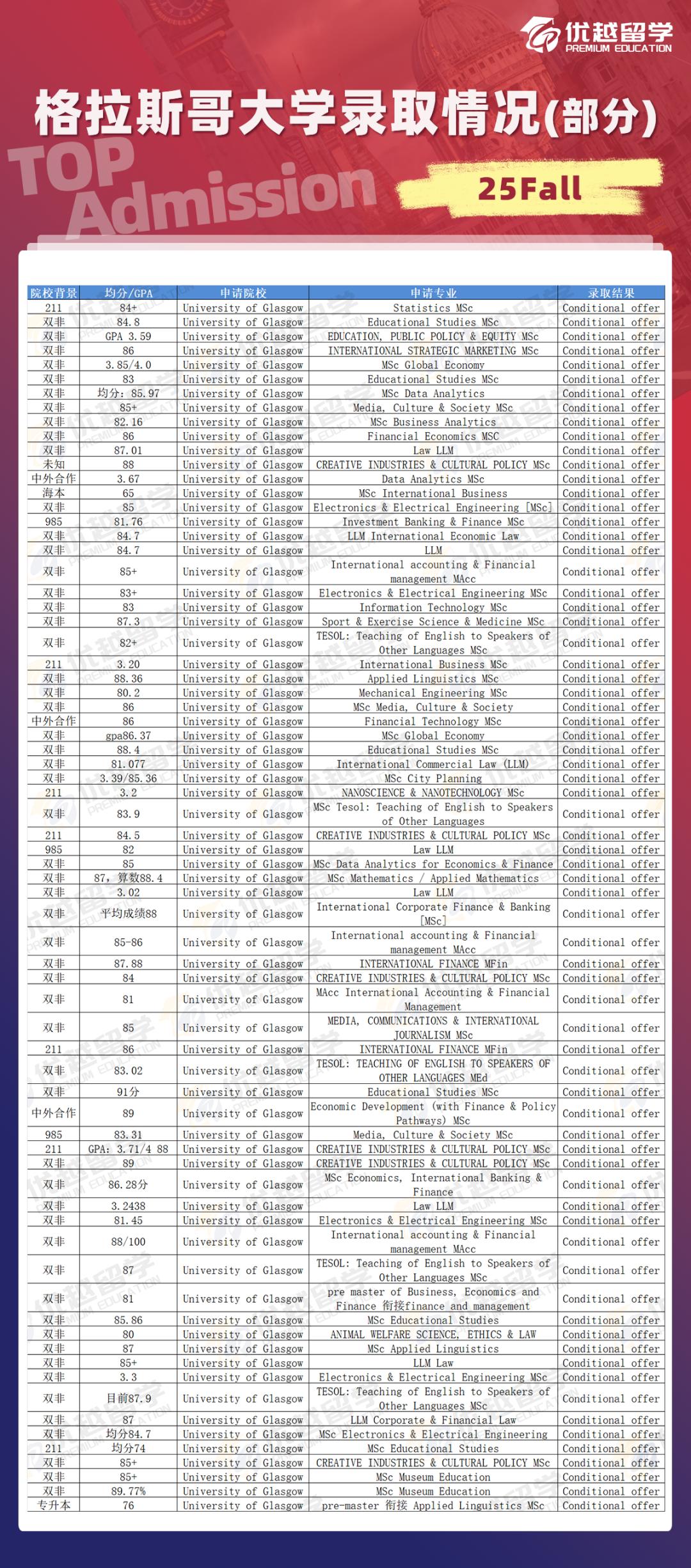 格拉斯哥大學(xué)的保值率高,在幾個(gè)世界大學(xué)排行榜里面保值率比較高。格拉斯哥大學(xué)是除了 G5 + 王曼愛華幾個(gè)之外排名最穩(wěn)定的一個(gè),非常有保值空間。