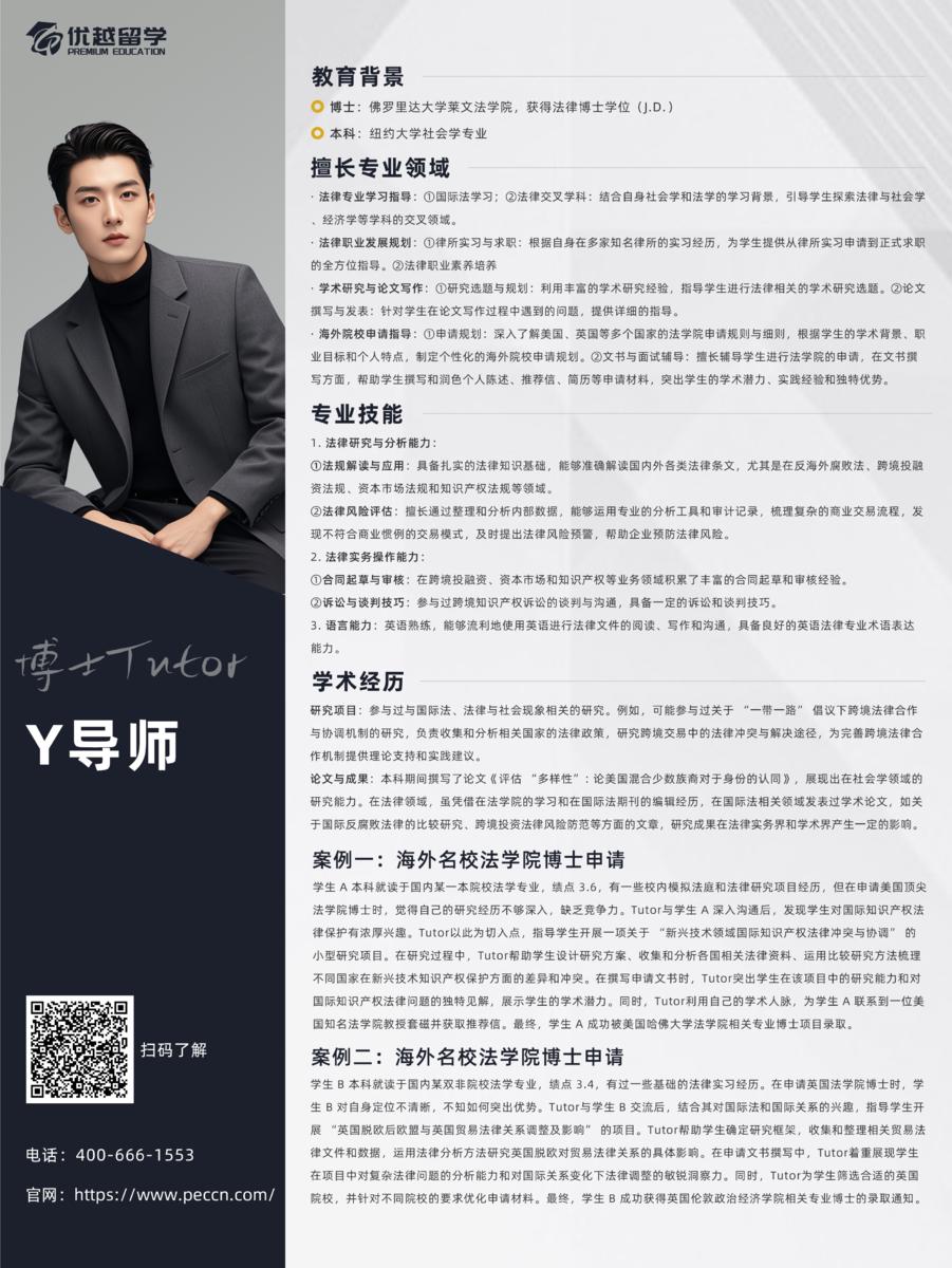 Y同學選擇了套餐中專業(yè)導師的輔導。Y導師從本科課程延伸出對利用數(shù)字技術(shù)預防青少年犯罪的濃厚興趣,并圍繞此制定了從數(shù)據(jù)分析師到政策顧問的清晰職業(yè)路徑,目標明確且規(guī)劃合理。