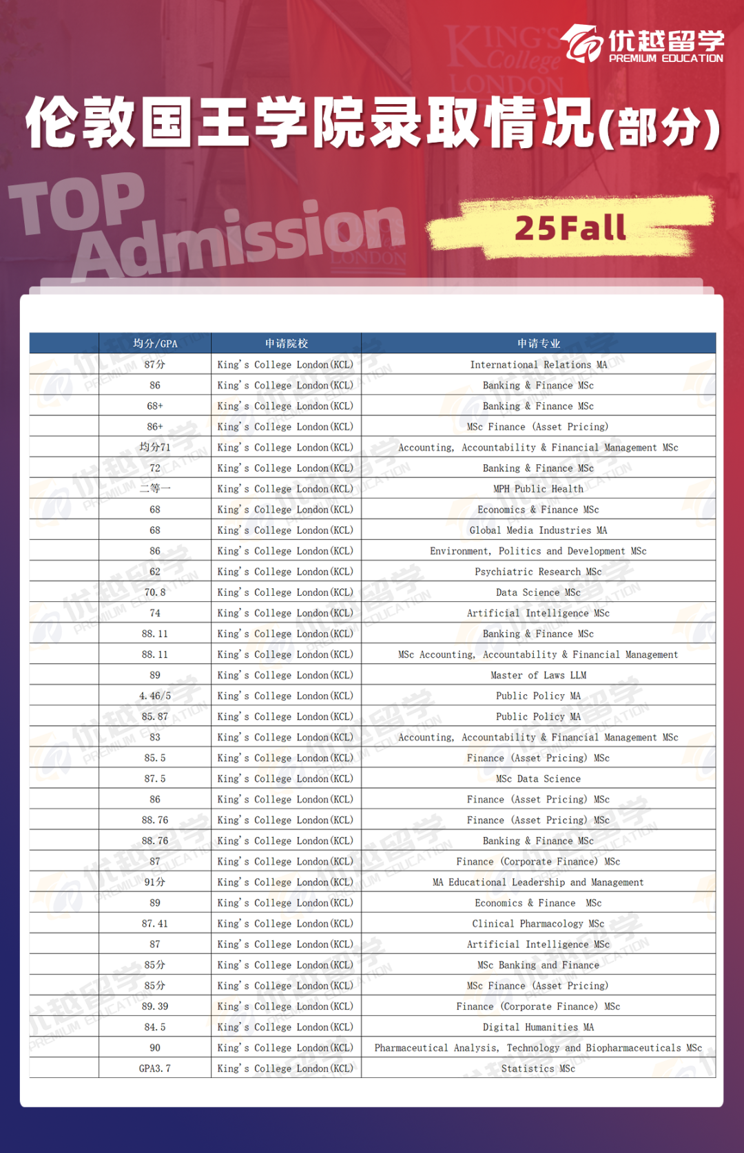 KCL 的 offer 接受率相當(dāng)可觀(guān)。許多學(xué)生一旦成功申請(qǐng)到該校,便會(huì)將其確定為最終就讀院校,不再繼續(xù)申請(qǐng)其他學(xué)校。對(duì)于雙非及雙非一本的學(xué)生而言,KCL 往往是他們的理想之選。