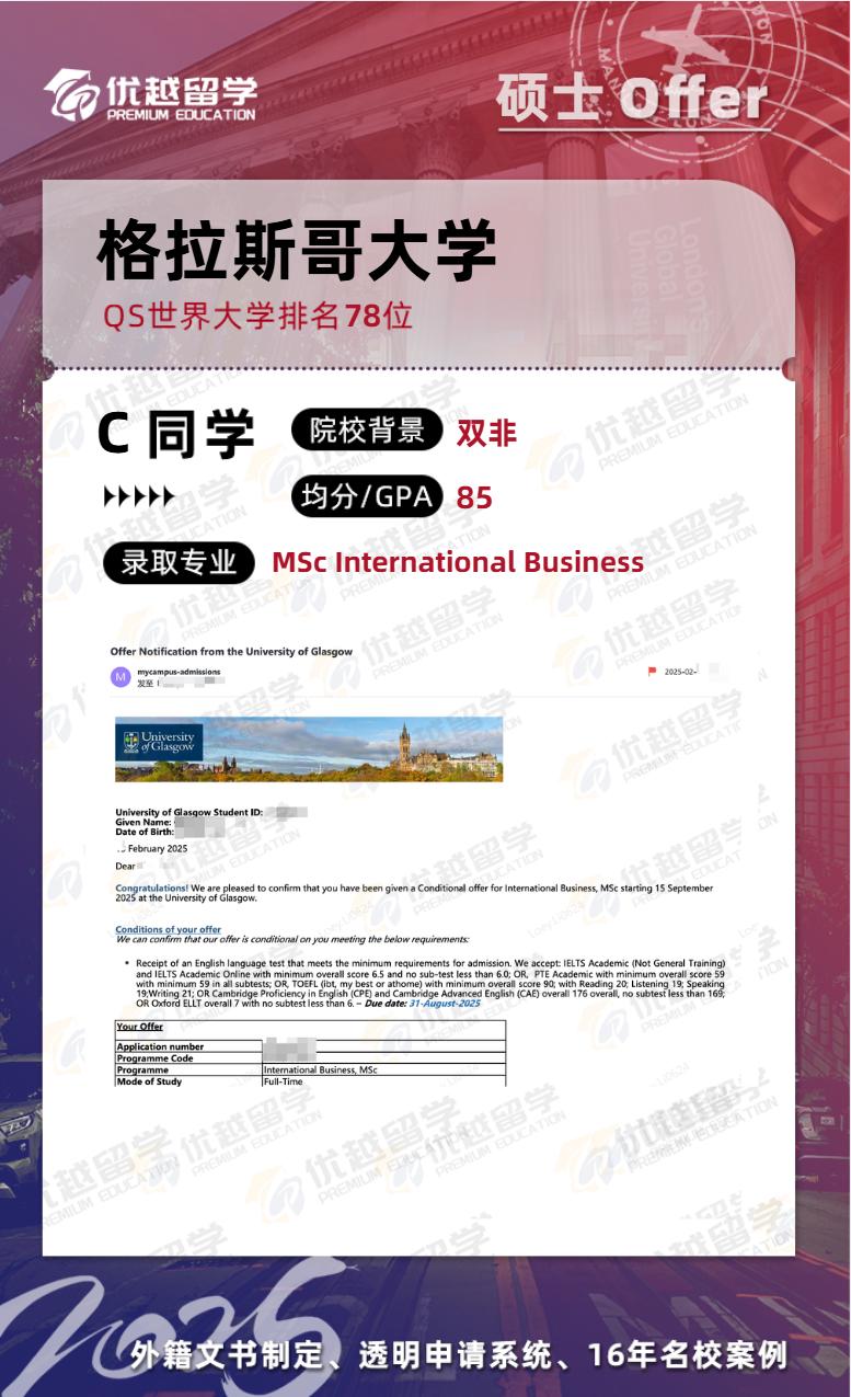 商學(xué)院史詩級放寬:取消對雙非院校的限制,均分直降 5 - 10 分!985/211 學(xué)生均分 75 +、雙非 80 + 即可沖擊商科專業(yè)。優(yōu)越留學(xué)的文書團(tuán)隊可以根據(jù)格拉斯哥大學(xué)商學(xué)院的新政策,突出學(xué)生的專業(yè)能力和潛力,讓雙非學(xué)生在申請中更具競爭力。