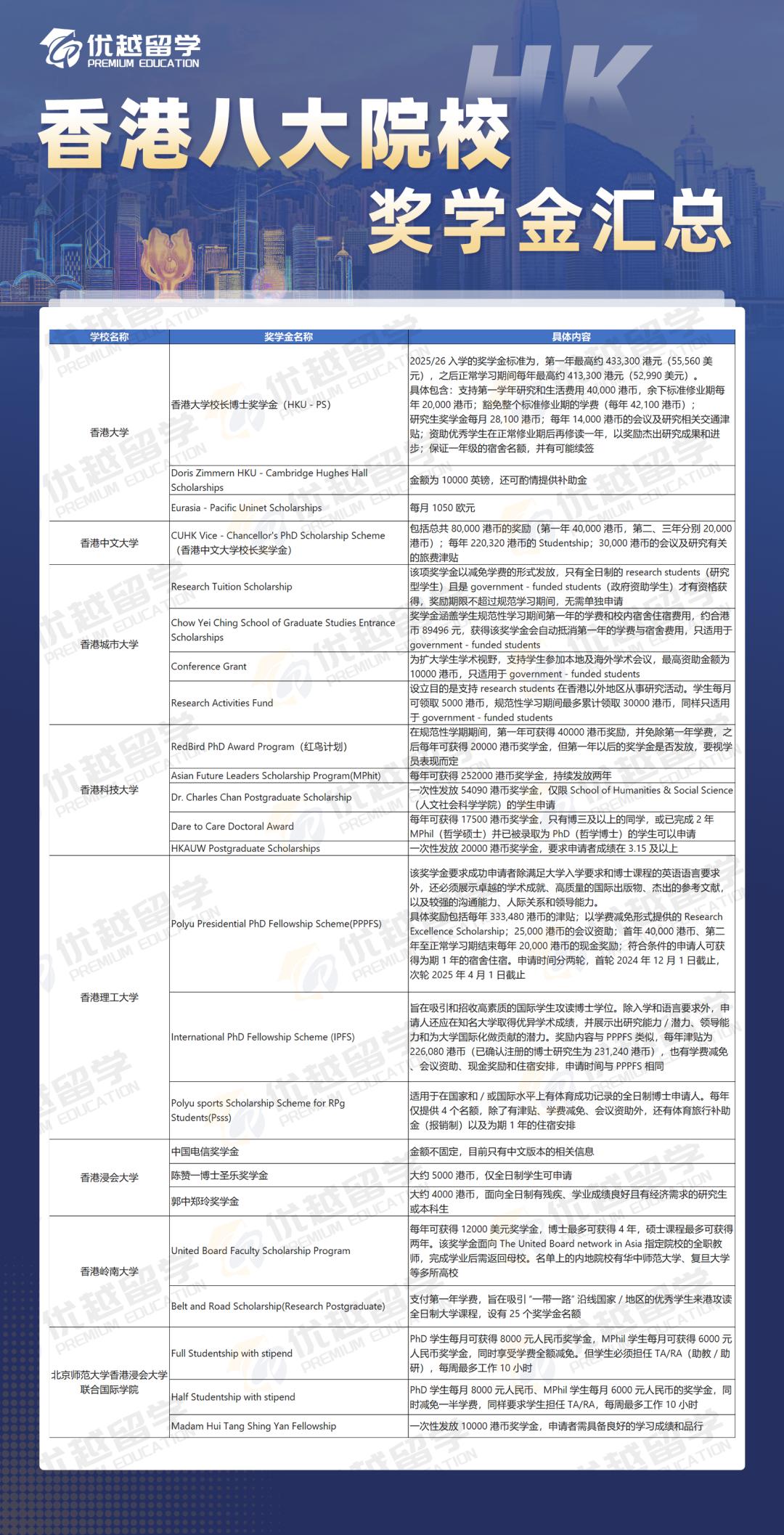 以上就是本次匯總的港澳新英全獎博士項(xiàng)目,如果你在申請過程中有任何疑問,歡迎隨時咨詢優(yōu)越留學(xué),我們的專業(yè)團(tuán)隊(duì)會為你提供全方位的申請指導(dǎo)和幫助,助力你實(shí)現(xiàn)博士夢想!