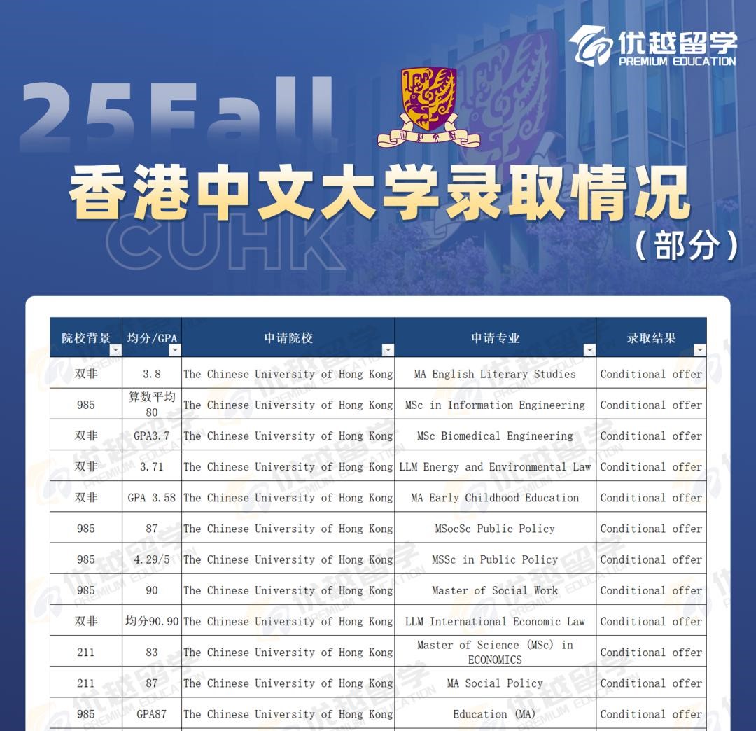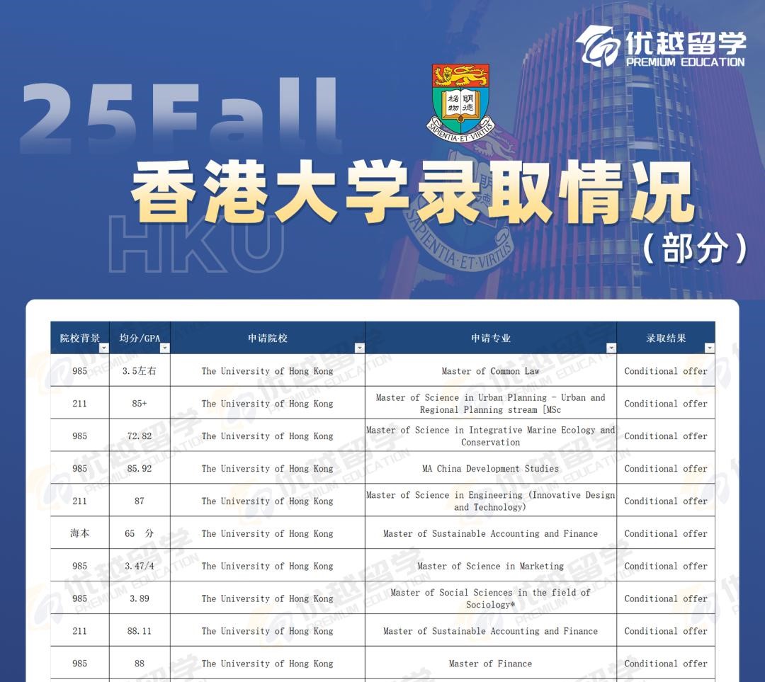 不過整體的錄取難度,港中文和港大還是比較接近的,985、211 院校的學(xué)生申請,均分85-87左右比較穩(wěn)妥,雙非院校的學(xué)生一般需要 88 - 90 以上的均分。