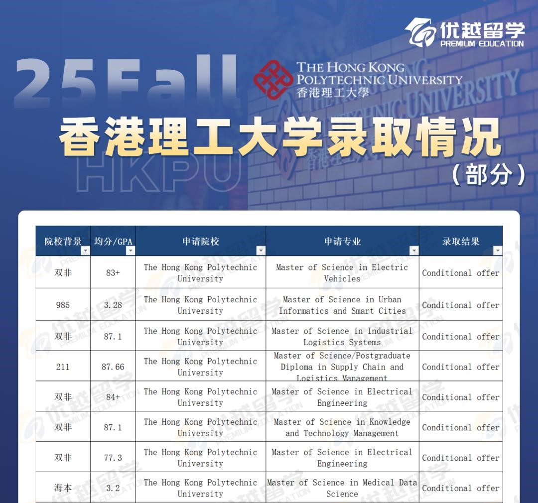 相比港三,港理工的錄取難度要低不少。985、211 院校的學(xué)生申請部分專業(yè),均分 75 - 78 以上就有機(jī)會被錄取,雙非院校的學(xué)生有些專業(yè)均分 83 - 84 左右就可能拿到 Offer。所以對于那些均分不是特別高的同學(xué)來說,港理工的性價比真的超高。