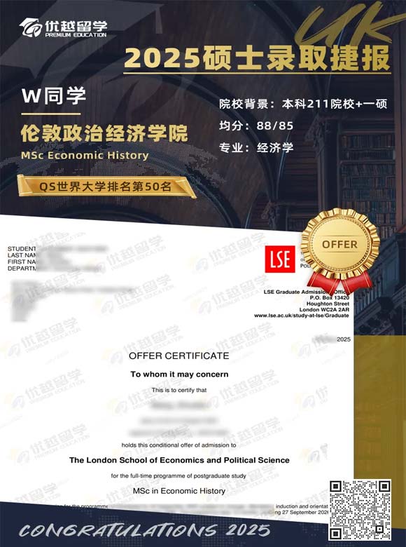 另外,考慮到他只有兩段實習(xí),我們建議他把助教經(jīng)歷展開寫:給碩士導(dǎo)師帶本科生計量經(jīng)濟學(xué)課,批改作業(yè)時發(fā)現(xiàn)很多學(xué)生對面板數(shù)據(jù)模型理解不深,于是自己做了一套可視化課件 —— 這既能體現(xiàn)學(xué)術(shù)能力,又能展示主動性,這是 LSE 很看重的特質(zhì)。申請過程中還有個小插曲:W 同學(xué)一開始只想讓本科和碩士的兩位教授寫,但其中一位碩士導(dǎo)師因為項目忙,回復(fù)比較慢。我們就建議他加上實習(xí)公司的主管,畢竟實習(xí)期間他獨立完成過行業(yè)研究報告,主管能從實操角度評價他的數(shù)據(jù)分析和邏輯思維,這樣推薦信就有了 "學(xué)術(shù) + 職業(yè)" 的雙重背書。功夫不負有心人,材料僅提交一個月,就收到了LSE的offer!說實話,這個結(jié)果我們不算特別意外,因為從一開始我們就明確:二碩申請不是 "重復(fù)鍍金",而是要找到 "學(xué)術(shù)空白點" 和 "職業(yè)跳板" 的交集,W 同學(xué)的經(jīng)歷正好卡在這個點上 —— 本科的數(shù)據(jù)分析優(yōu)勢,香港碩士的區(qū)域市場經(jīng)驗,加上精準對接 LSE 的研究方向,再加上晚申階段的高效執(zhí)行,讓他在競爭激烈的二碩申請中殺出一條路。現(xiàn)在回頭看,這個案例給我們最大的啟示是:哪怕申請時間晚,只要能快速挖掘?qū)W生的獨特優(yōu)勢,把經(jīng)歷整合成有邏輯的 "學(xué)術(shù)故事",并且精準匹配目標院校的錄取偏好,依然有機會逆襲。