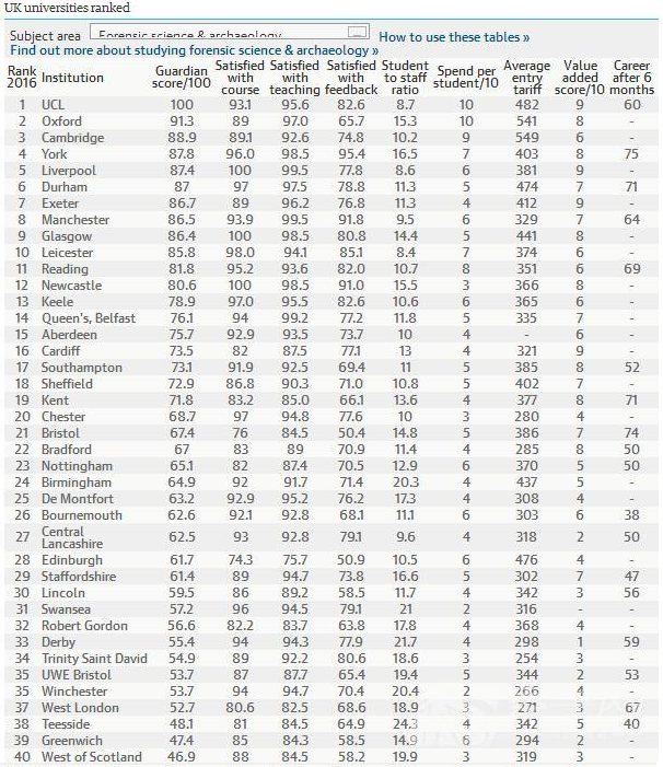 法醫(yī)科學(xué)和考古學(xué)專業(yè)的排名如下: