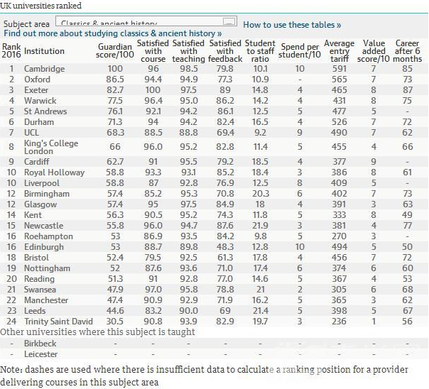 近日,2016《衛(wèi)報》版英國大學排名已出,雖然各大學位次的變化不一,但也給我們在英國留學的學校選擇方面提供了很多值得參考的消息。同時,《衛(wèi)報》更根據(jù)各學校的學術(shù)等各方面表現(xiàn)進行了專業(yè)排名。