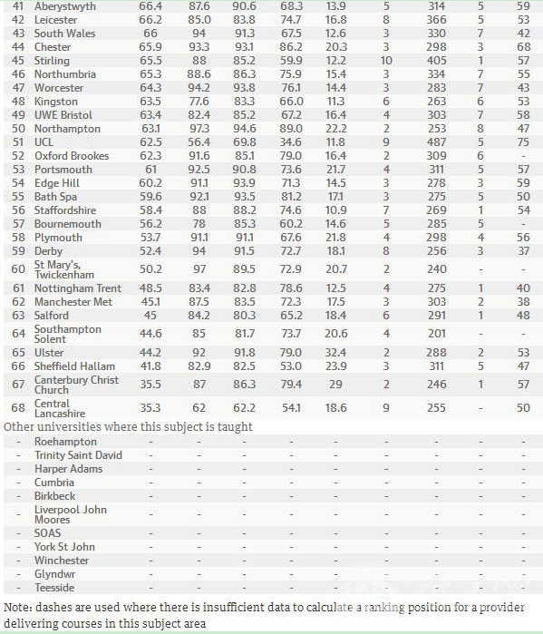 英國《衛(wèi)報(bào)》發(fā)布了英國大學(xué)綜合排名,同時(shí)也發(fā)布了2016《衛(wèi)報(bào)》英國大學(xué)專業(yè)排名,根據(jù)最新的2016《衛(wèi)報(bào)》英國大學(xué)地理及環(huán)境研究專業(yè)排名可以看出,此次排名位于首位的是倫敦政治經(jīng)濟(jì)學(xué)院和圣德安魯斯大學(xué),第三名為劍橋大學(xué),第四名為杜倫大學(xué),第五名為牛津大學(xué),具體如下:
