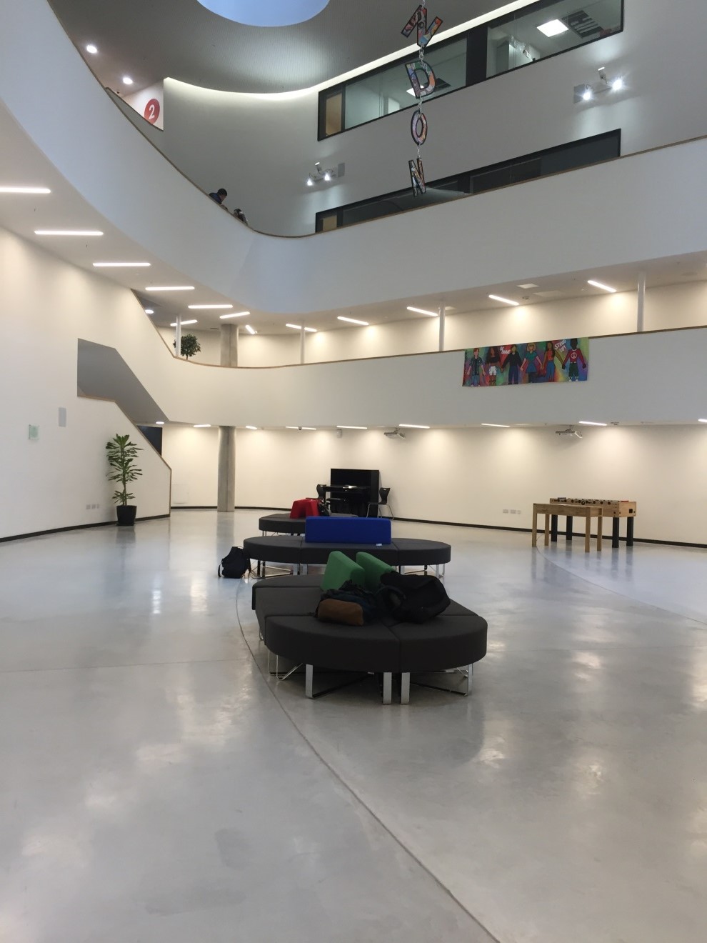 教學(xué)樓是典型的西歐哥特式建筑,雙圓心骨架尖券,屋面石架在券上,形成拱頂。整個(gè)樓層通透明亮,色調(diào)統(tǒng)一,內(nèi)部結(jié)構(gòu)線條分明,每一樓層都有很強(qiáng)的空間感。小編首先來(lái)到的是教師辦公的M floor,正是學(xué)生上課期間,教師的辦公地顯得非常安靜。褐色條紋地毯,暖色系的燈光,瑩白的墻面,一切顯得那么靜謐又莊嚴(yán)。