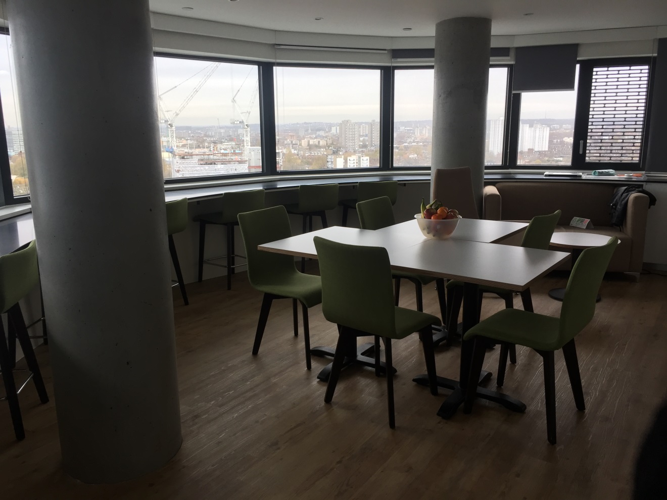 此外,每層宿舍還都設(shè)有一個(gè)公用的休息區(qū)域,學(xué)生可以在這休息,吃飯(但是不能做飯),學(xué)校提供免費(fèi)的牛奶,面包。這里配備有微波爐,冰箱等設(shè)施。從這里可以俯瞰整個(gè)倫敦的夜景。