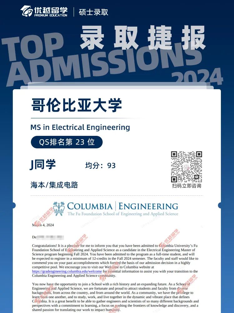 2024重磅offer來襲!恭喜J同學在碩士留學申請中斬獲哥倫比亞大學電子工程碩士錄取!