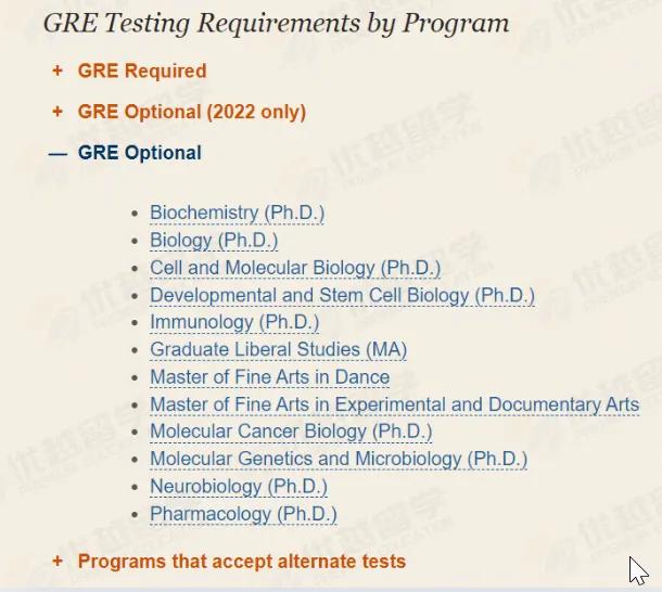 在生物工程、電氣和計(jì)算機(jī)工程、材料工程等專業(yè)上,GRE 和 GRE Sub 可選擇性提交,即有分?jǐn)?shù)就可以提交,但不提交成績(jī)也不會(huì)影響錄取審核。