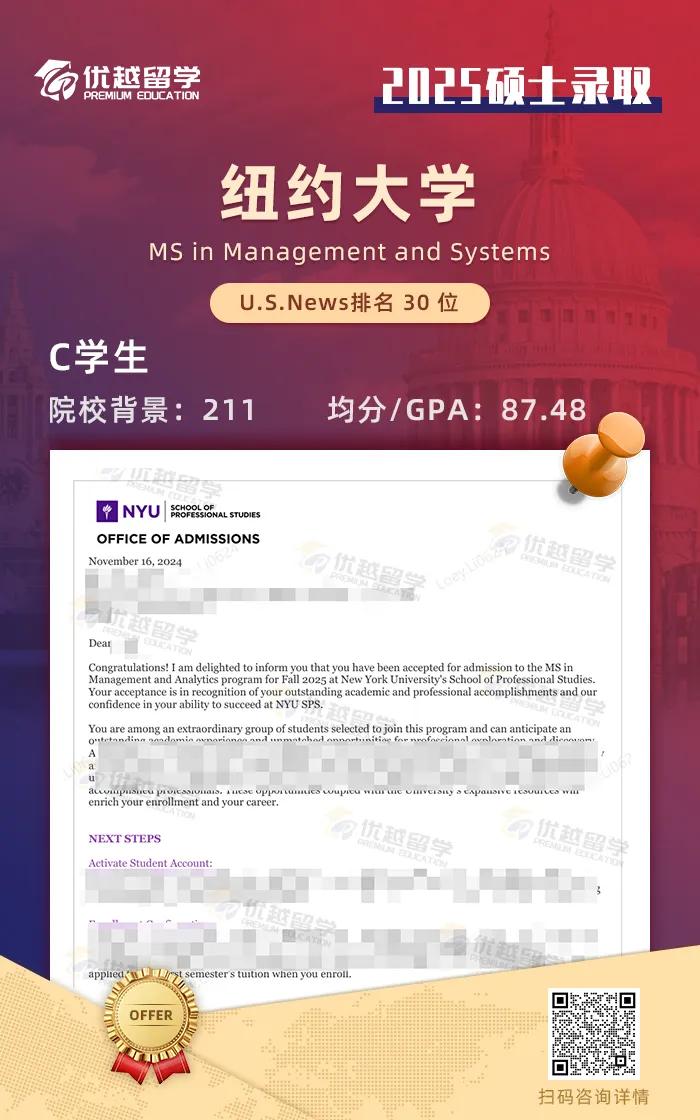 25fall大家收到offer了嗎?上周我們優(yōu)越學(xué)員新收到一枚紐約大學(xué)碩士offer,借此機會來跟大家詳解一下這所得天獨厚的美國大學(xué)。