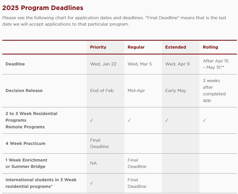 2025 年申請(qǐng)截止時(shí)間分好幾類,優(yōu)先申請(qǐng)?jiān)?1 月 22 日截止,常規(guī)申請(qǐng) 3 月 5 日截止,延期申請(qǐng) 4 月 9 日截止,4 月 15 日到 5 月 15 日還有滾動(dòng)申請(qǐng)。優(yōu)越留學(xué)的顧問(wèn)老師會(huì)根據(jù)學(xué)生的情況,幫助選擇最適合的申請(qǐng)批次,提高錄取幾率。