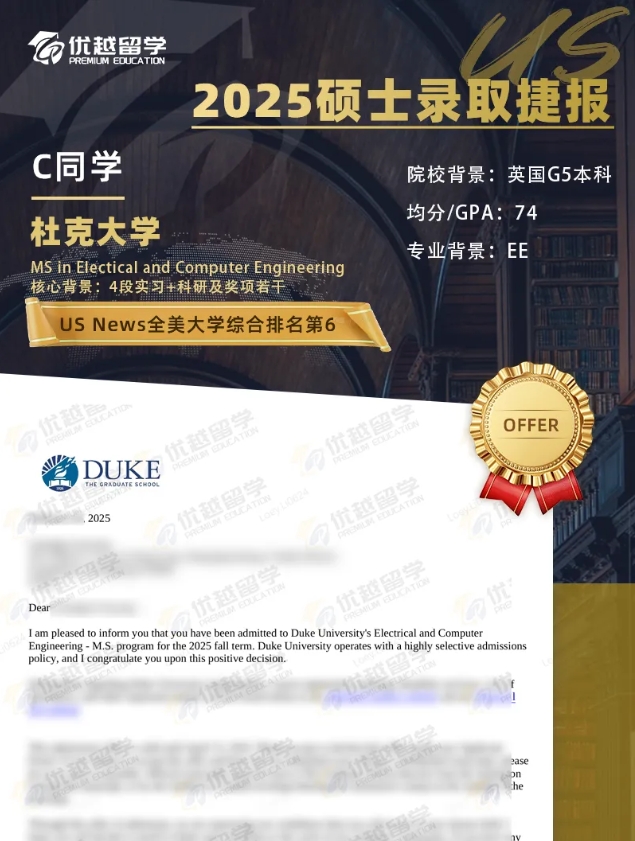 以上是【【美國(guó)碩士】雙非逆襲TOP6!斬獲杜克、JHU、UCL等7份頂尖ME offer!】相關(guān)的全部?jī)?nèi)容,查看更多【美國(guó)本科留學(xué)】相關(guān)資訊可前往【優(yōu)越留學(xué)】首頁(yè)!詳細(xì)申請(qǐng)規(guī)劃及方案定制請(qǐng)預(yù)約優(yōu)越留學(xué)顧問(wèn)為你一對(duì)一解答!