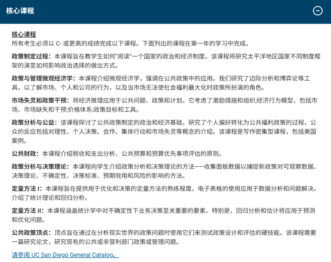 此外,UCSD在全球最佳大學(xué)中排名第21,全美最佳國(guó)立大學(xué)排名第29,全美頂尖公立大學(xué)排名第6。MPP是一個(gè)嚴(yán)格、專注、以技能為導(dǎo)向的項(xiàng)目,旨在培養(yǎng)從事政策分析職業(yè)的學(xué)生,適合那些想要分析公共問(wèn)題并提出改進(jìn)建議的學(xué)生。